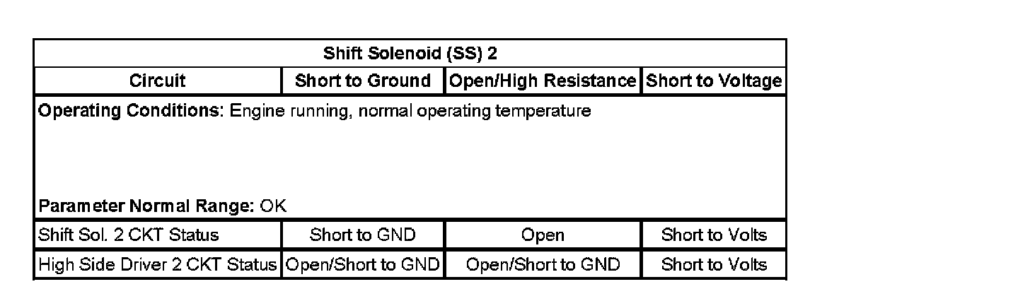 - Shift Solenoid (SS) 2 Control Circuit Low Voltage