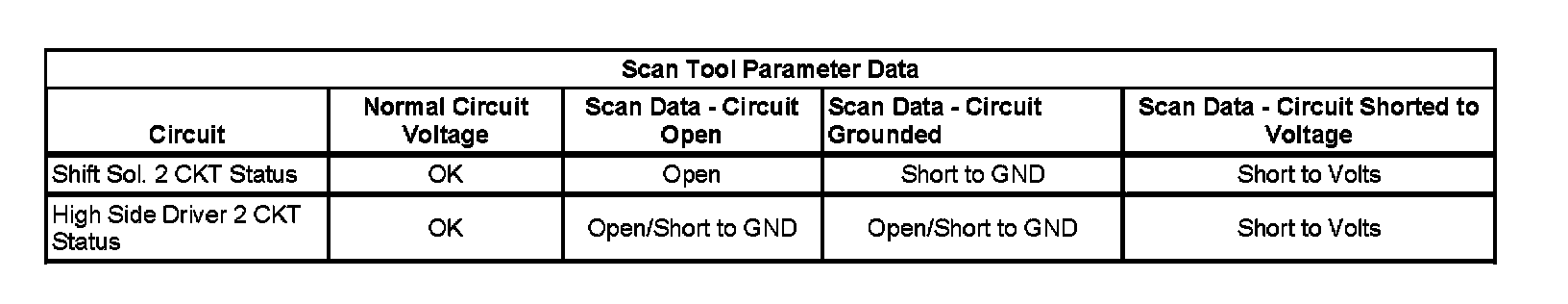 3. Observe the scan tool data parameter Shift Sol. 2 CKT Status. The parameter should display OK.