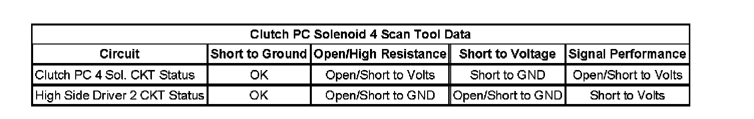 - Clutch Pressure Control (PC) Solenoid 4 Control Circuit Low Voltage