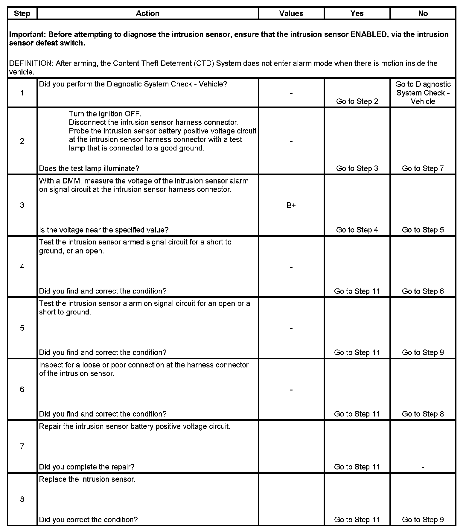 Intrusion Sensor Inoperative