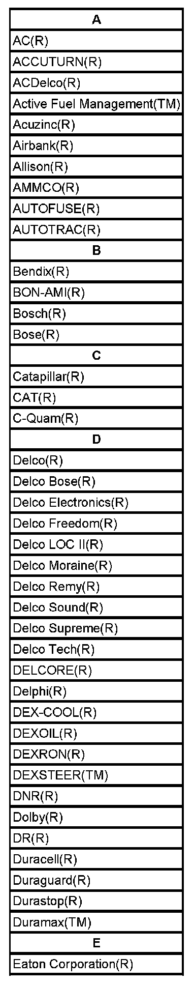 Listed below are Registered Trademarks ((R)) or Non-Registered Trademarks ((TM)) which may appear in this Service Data.
