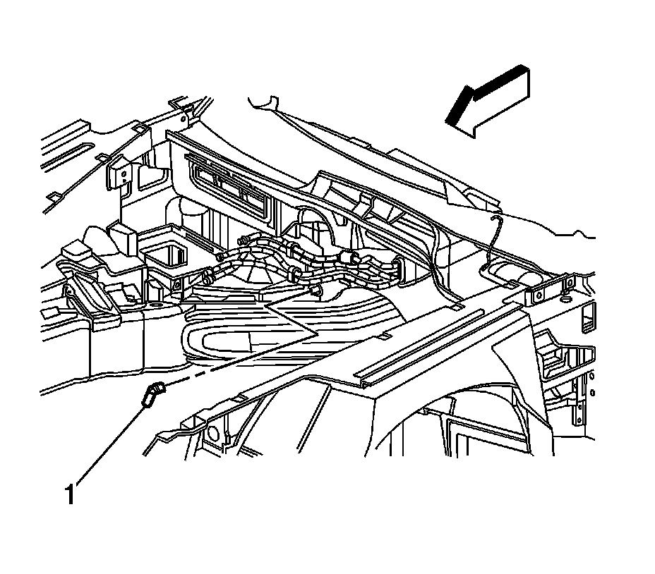 4. Remove the evaporator drain tube (1) from the HVAC module.