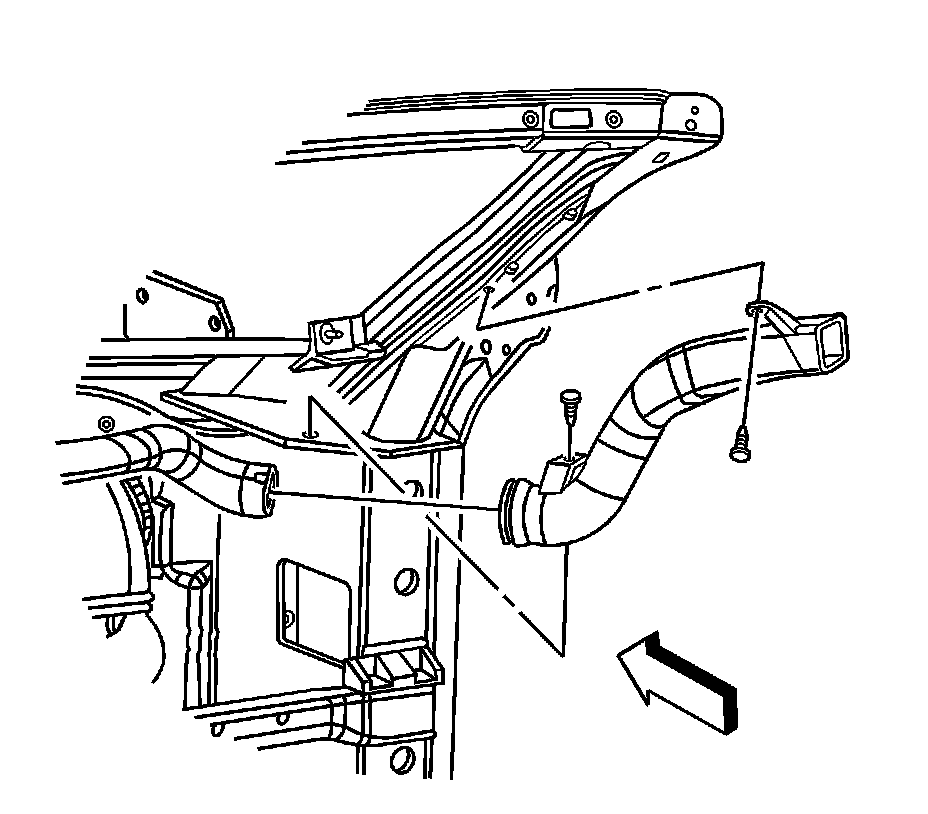17. Remove the retainers from the upper outlet duct on the right side window defogger.