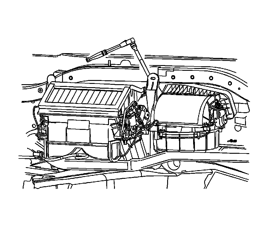 Important: Reposition the HVAC module rearward to access the front left-hand (LH) recirculation housing screw.