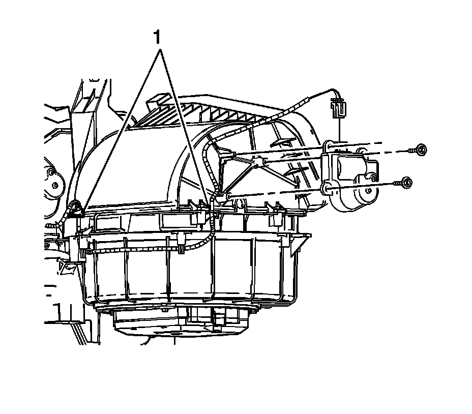 36. Disconnect the HVAC module wiring harness from the recirculation housing (1).