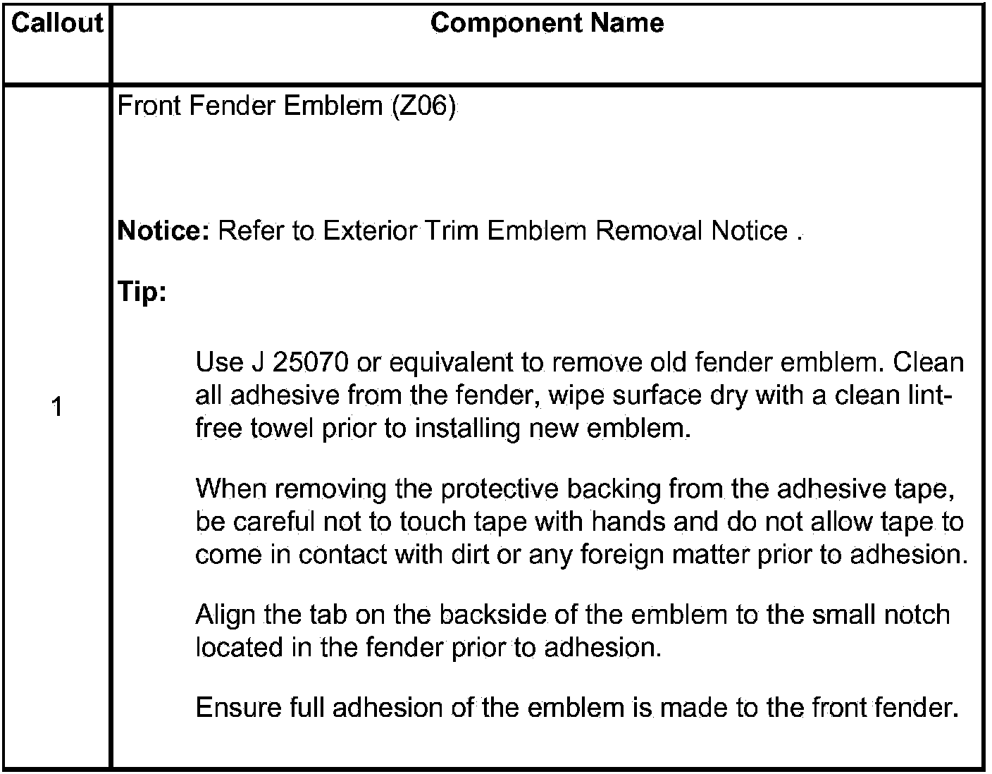 Front Fender Emblem/Nameplate Replacement (Z06)