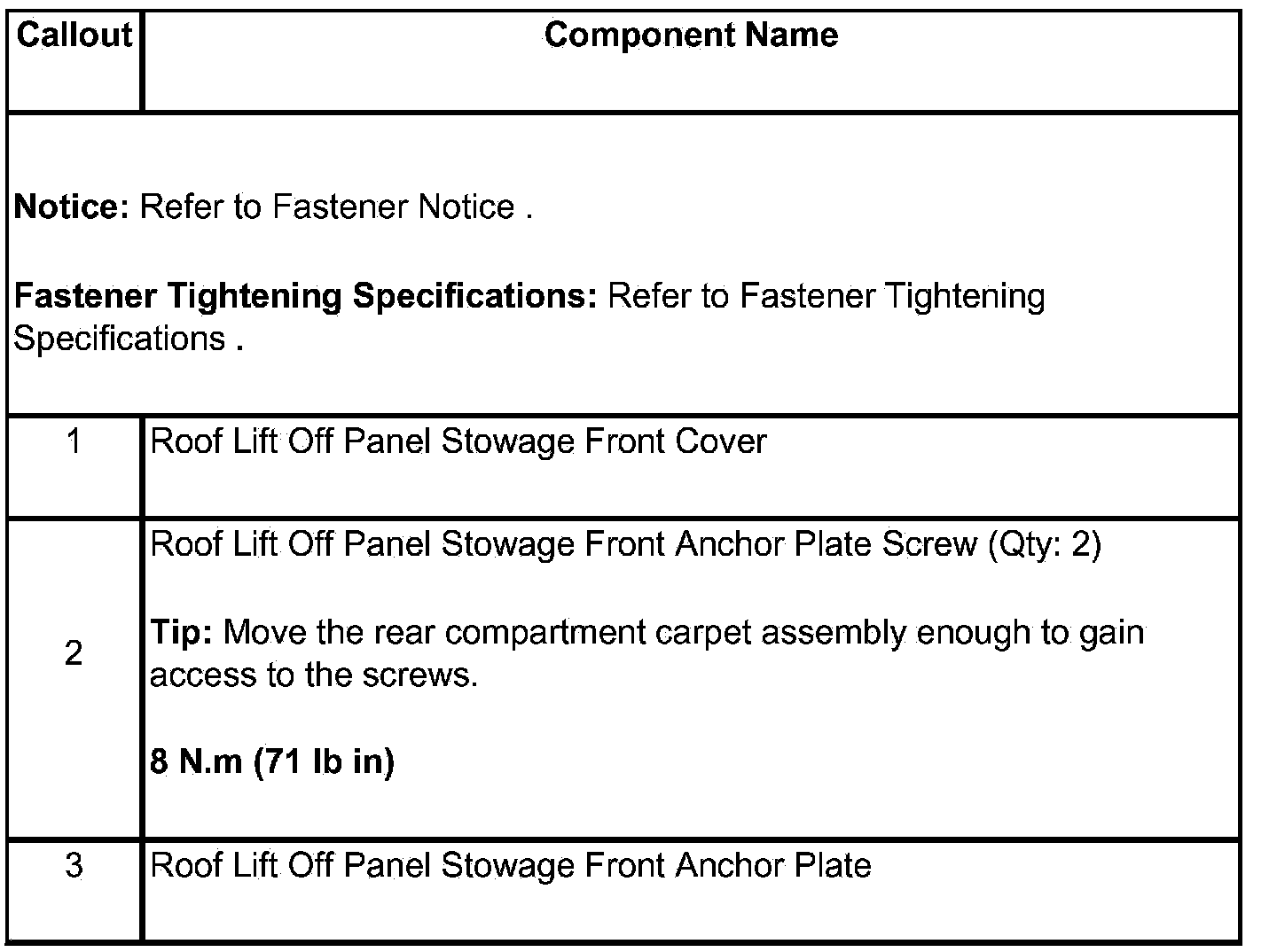Roof Lift Off Panel Front Stowage Mounting Plate Replacement