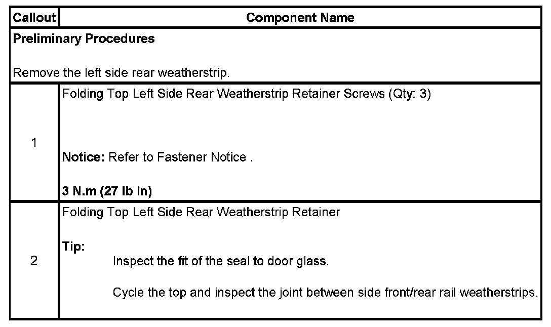 Folding Top Side Rear Weatherstrip Retainer Replacement - Left