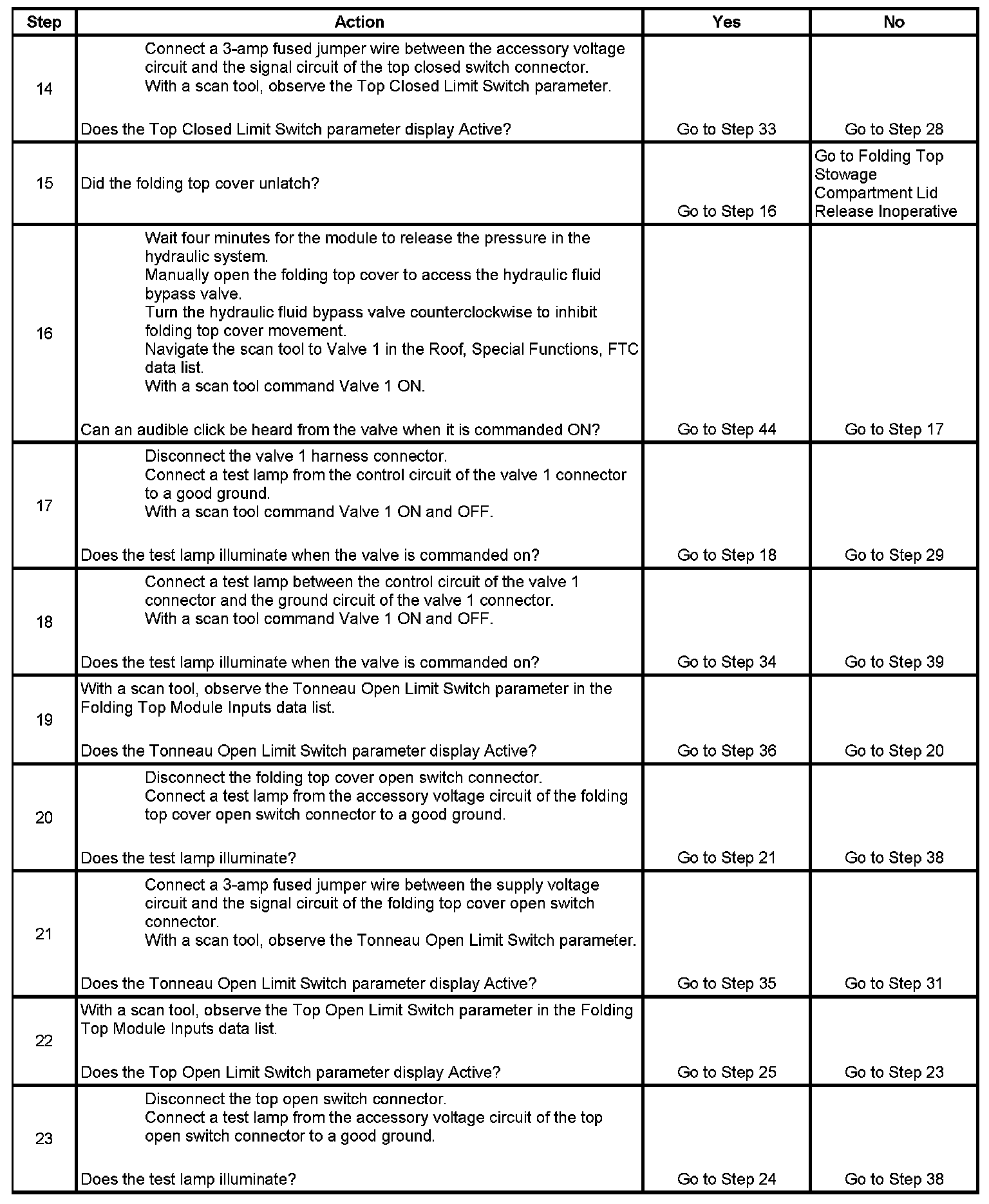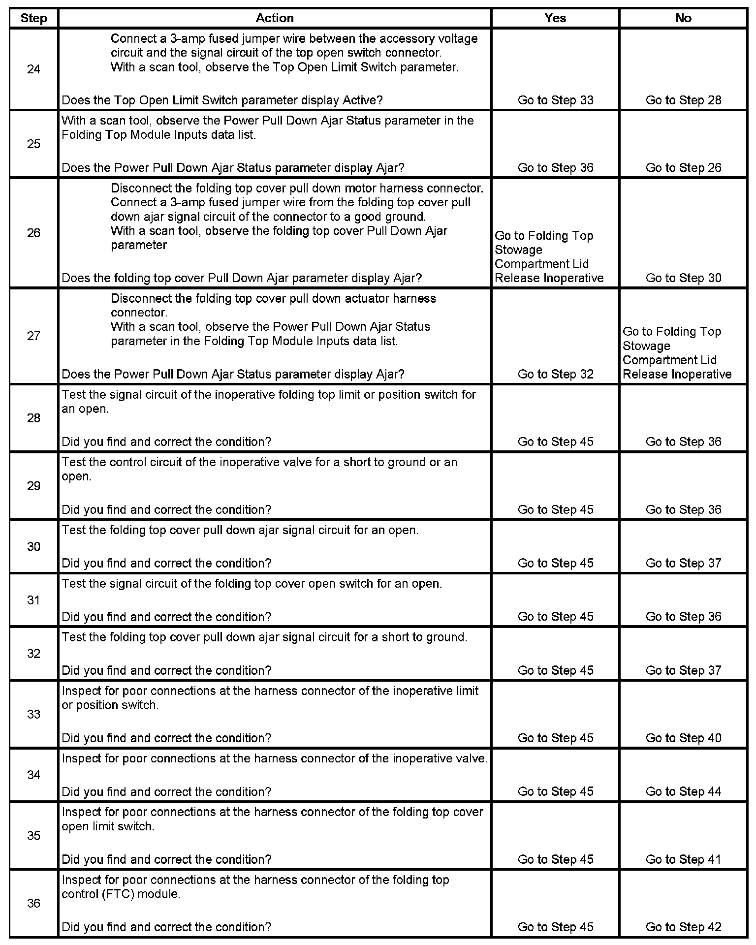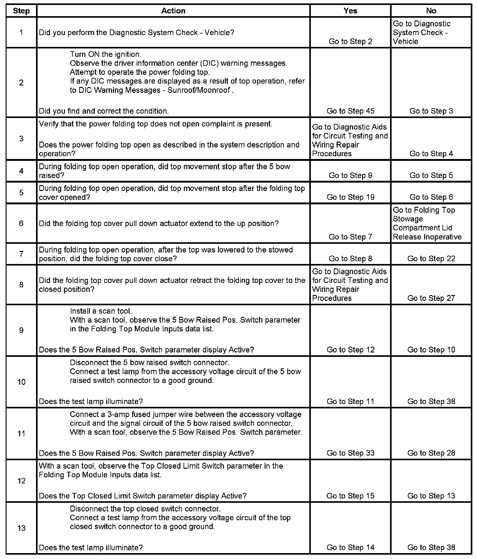 - When the folding top control switch is pressed, check for driver information center (DIC) warning messages.
