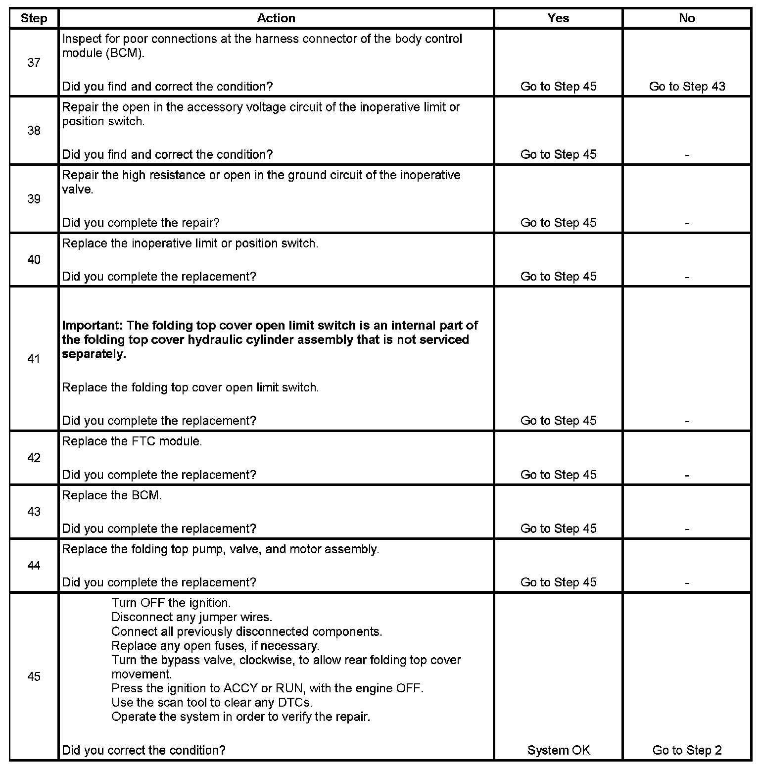 * Using the scan tool to access the History parameters for the folding top control (FTC) module, will display the last status of the items listed.