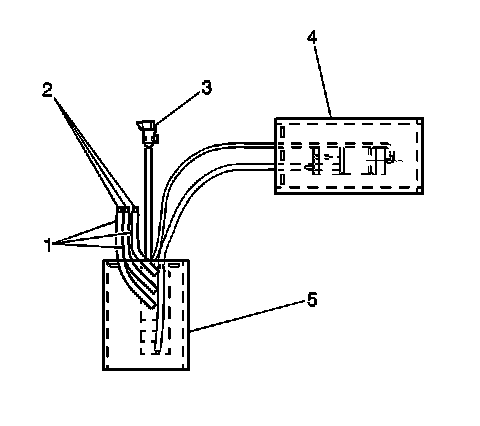 8. Cut the control module to bladder air hoses (1) 75 mm (3 in) from the control module (5).