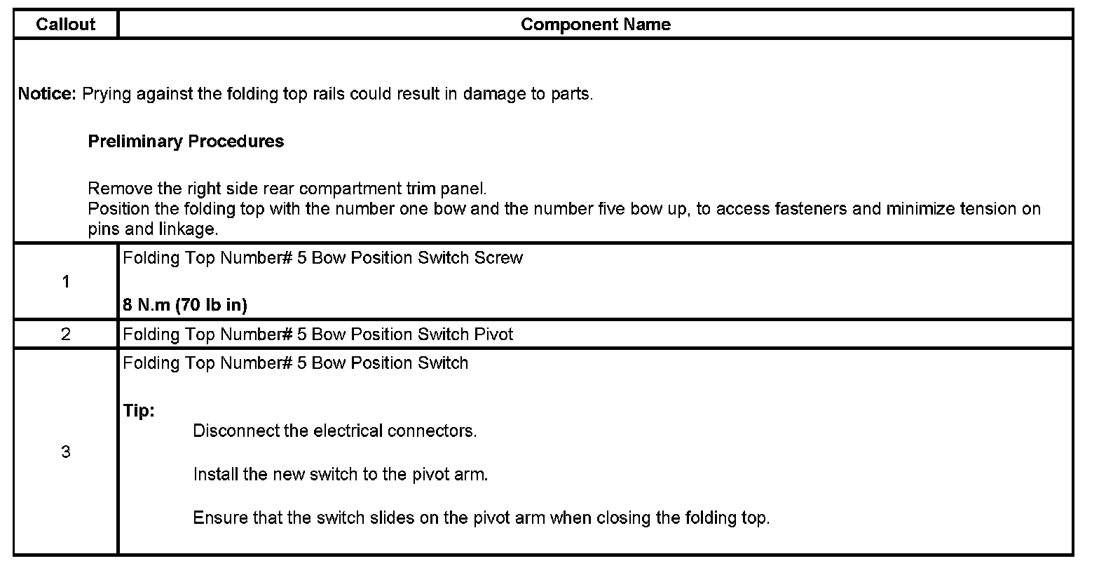 Folding Top Position Switch Replacement - Number 5 Bow