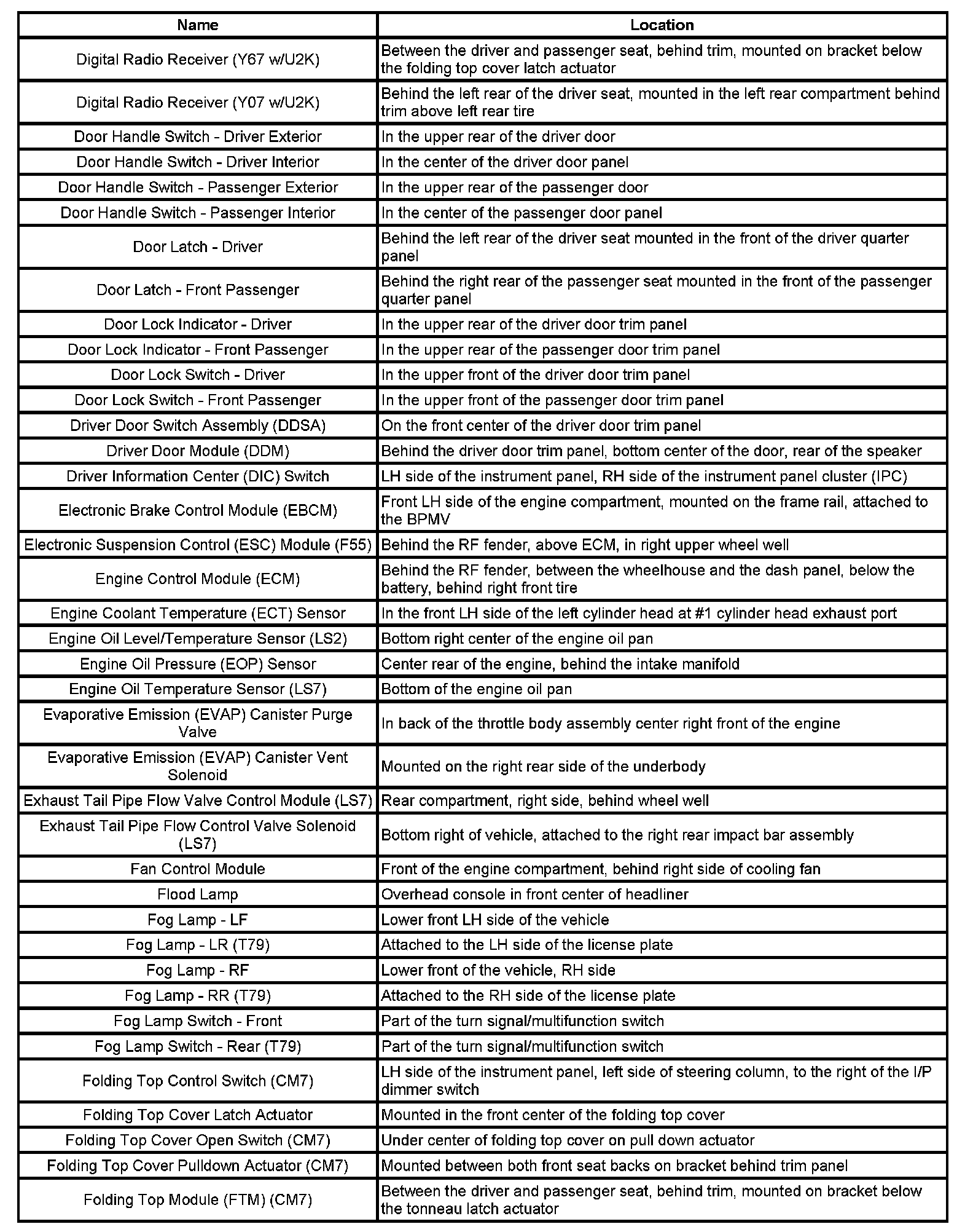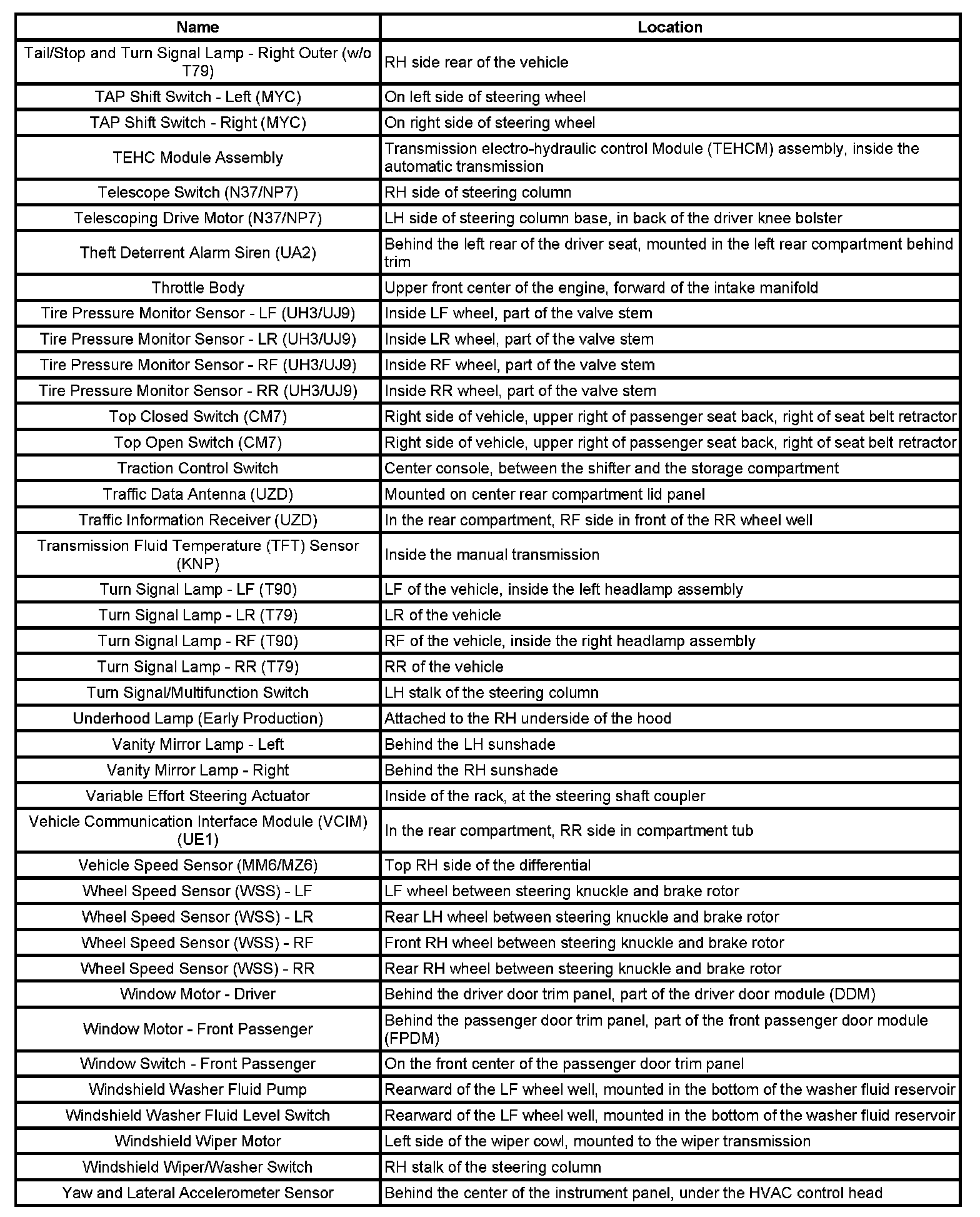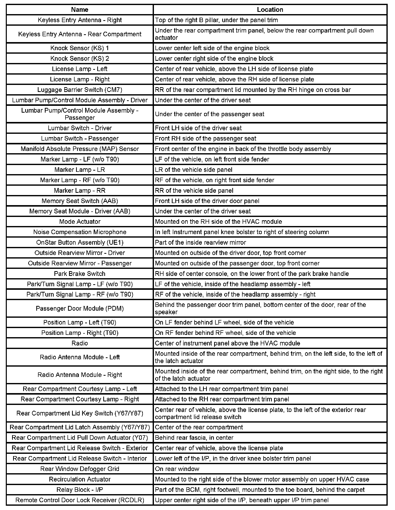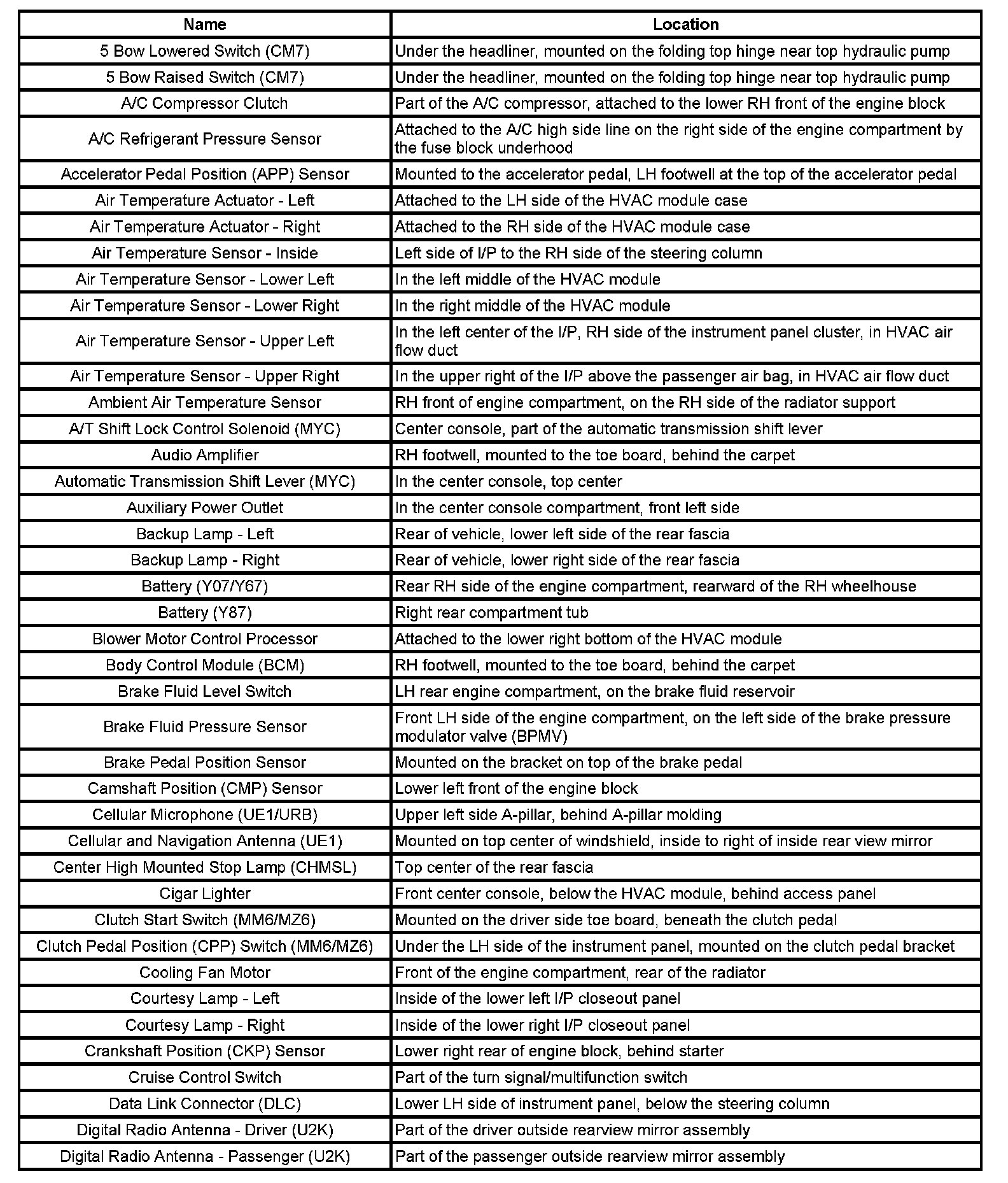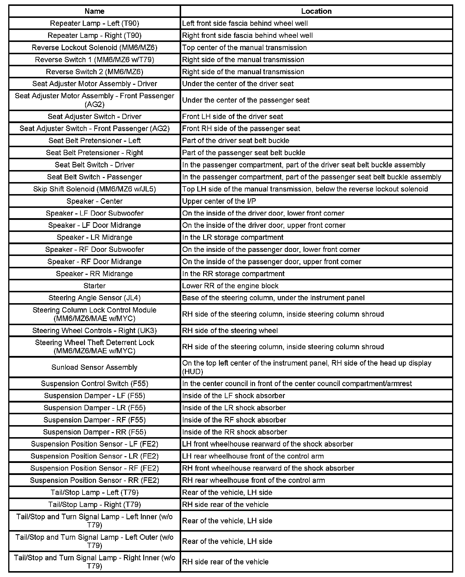 Master Electrical Component List