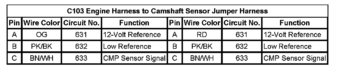 C103 Engine Harness to Camshaft Sensor Jumper Harness
