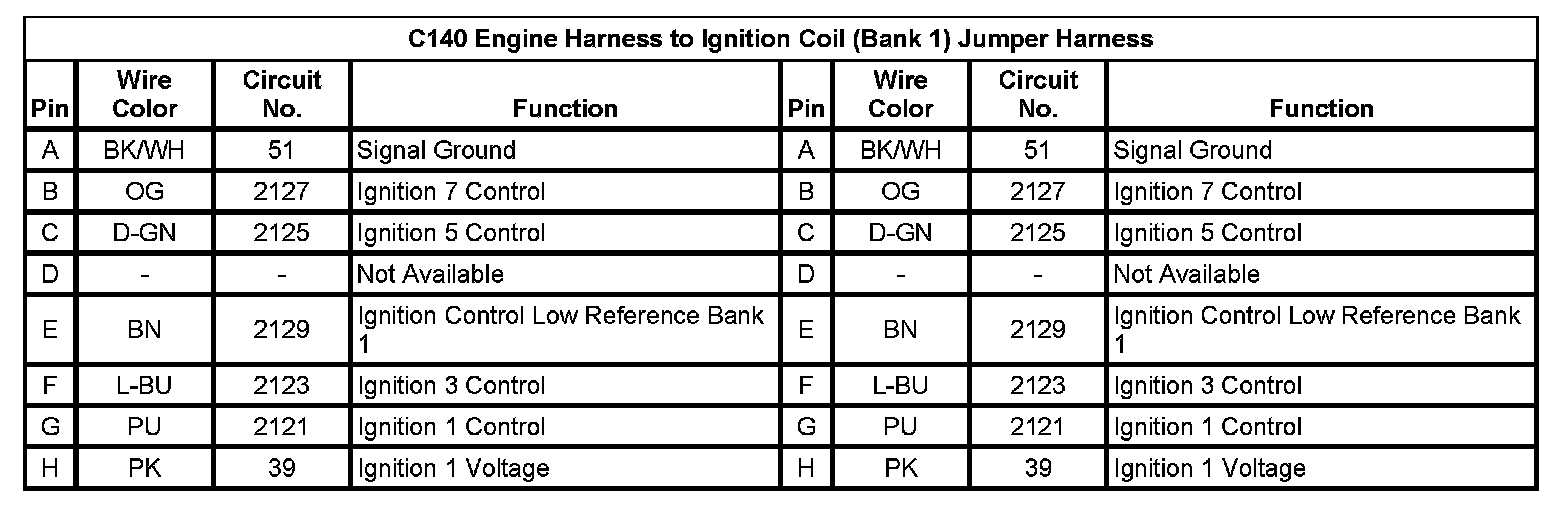 C140 Engine Harness to Ignition Coil (Bank 1) Jumper Harness