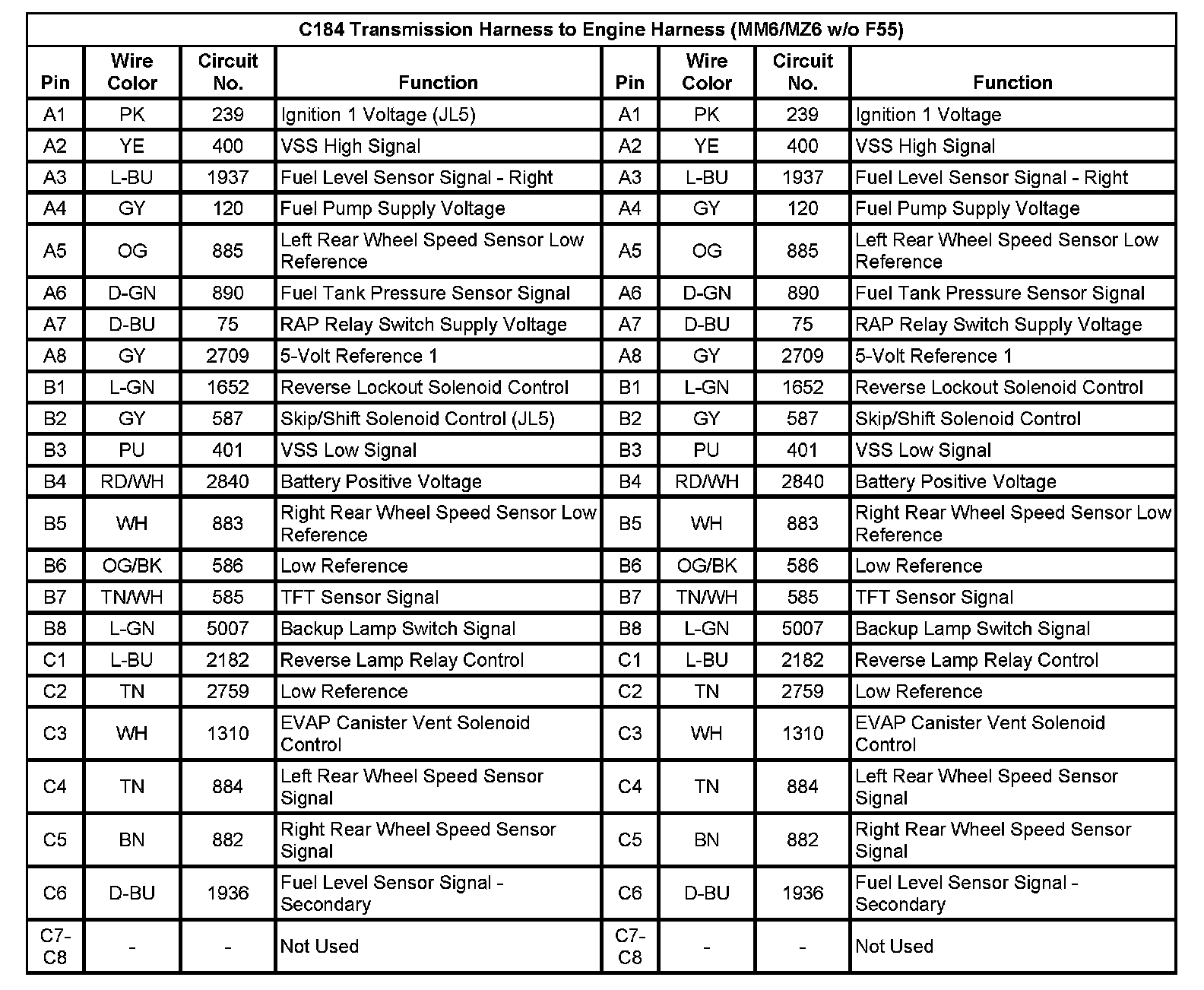 C184 Transmission Harness to Engine Harness (MYC or MM6/MZ6 w/F55)