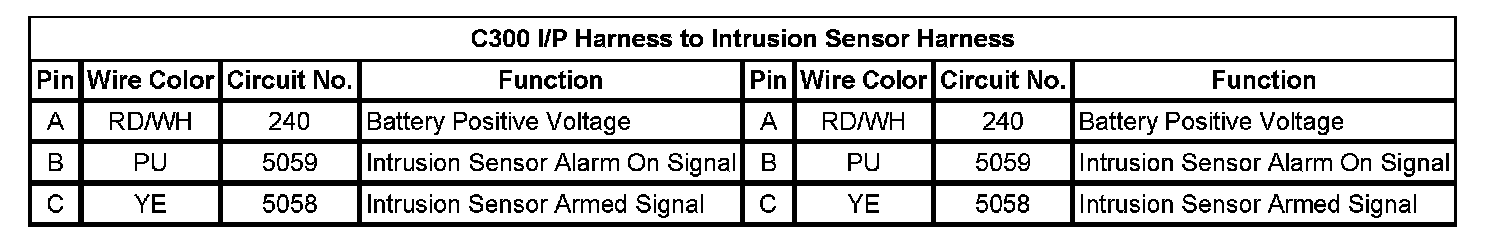 C300 I/P Harness to Intrusion Sensor Harness