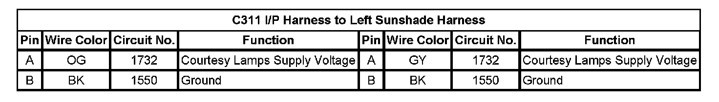 C311 I/P Harness to Left Sunshade Harness