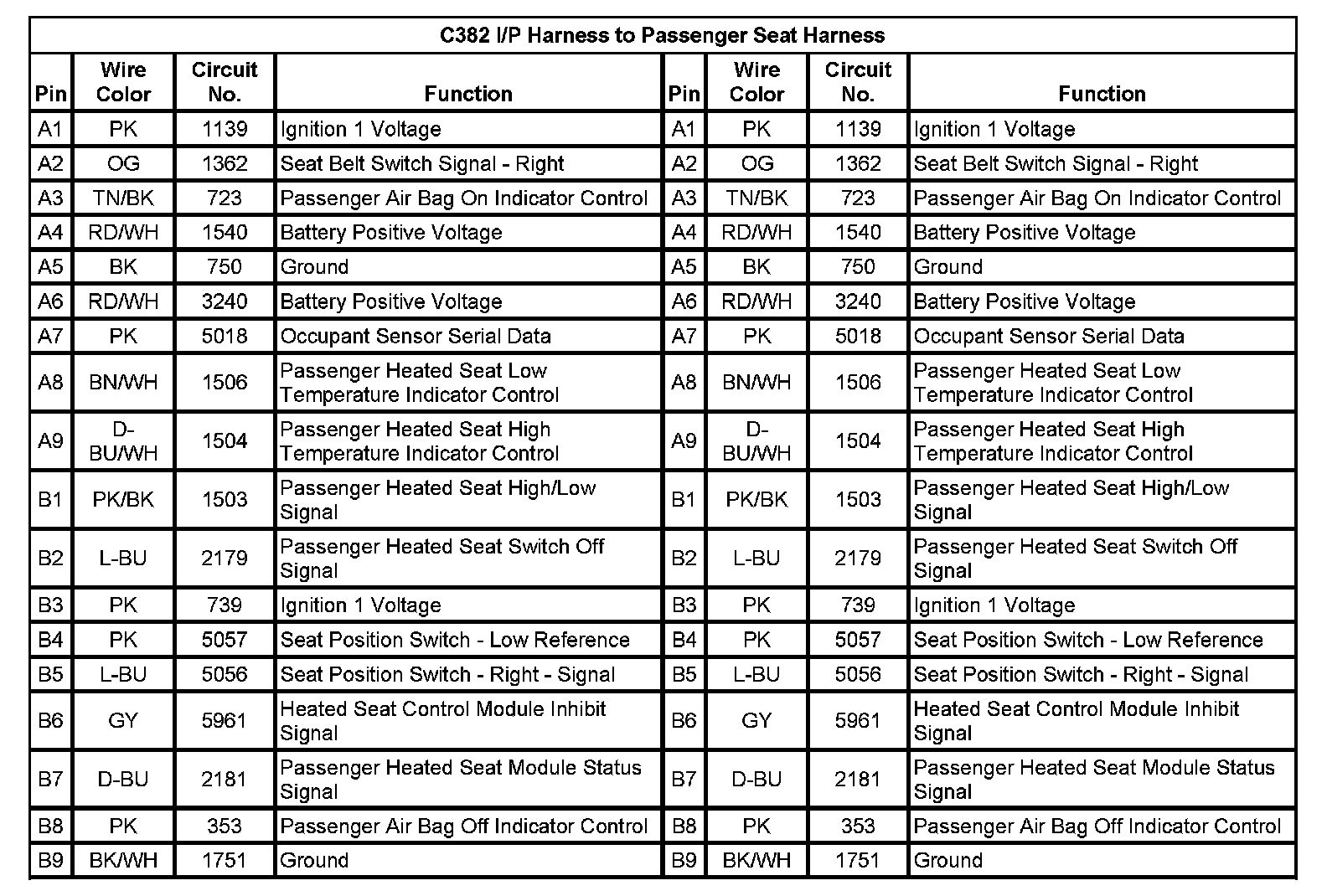 C382 I/P Harness to Passenger Seat Harness