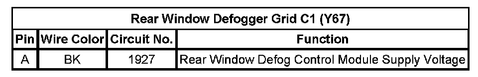 Rear Window Defogger Grid C1 (Y67)