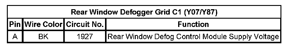 Rear Window Defogger Grid C1 (Y07/Y87)