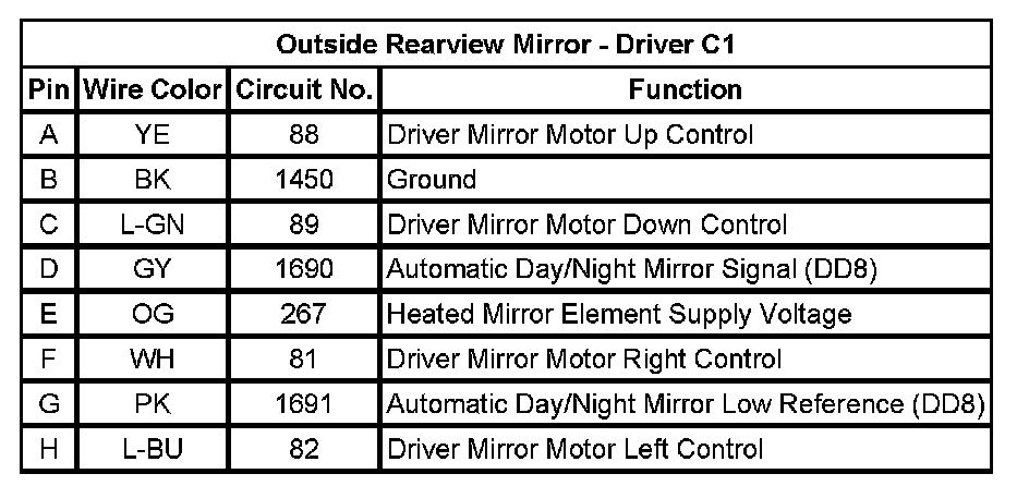 Outside Rearview Mirror - Driver C1