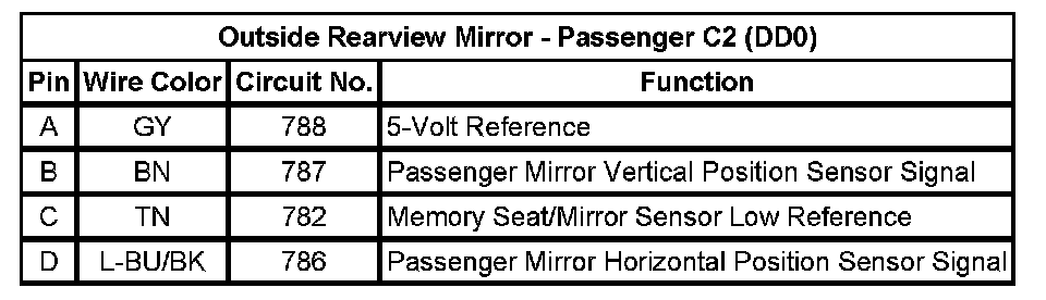 Outside Rearview Mirror - Passenger C2 (DD0)