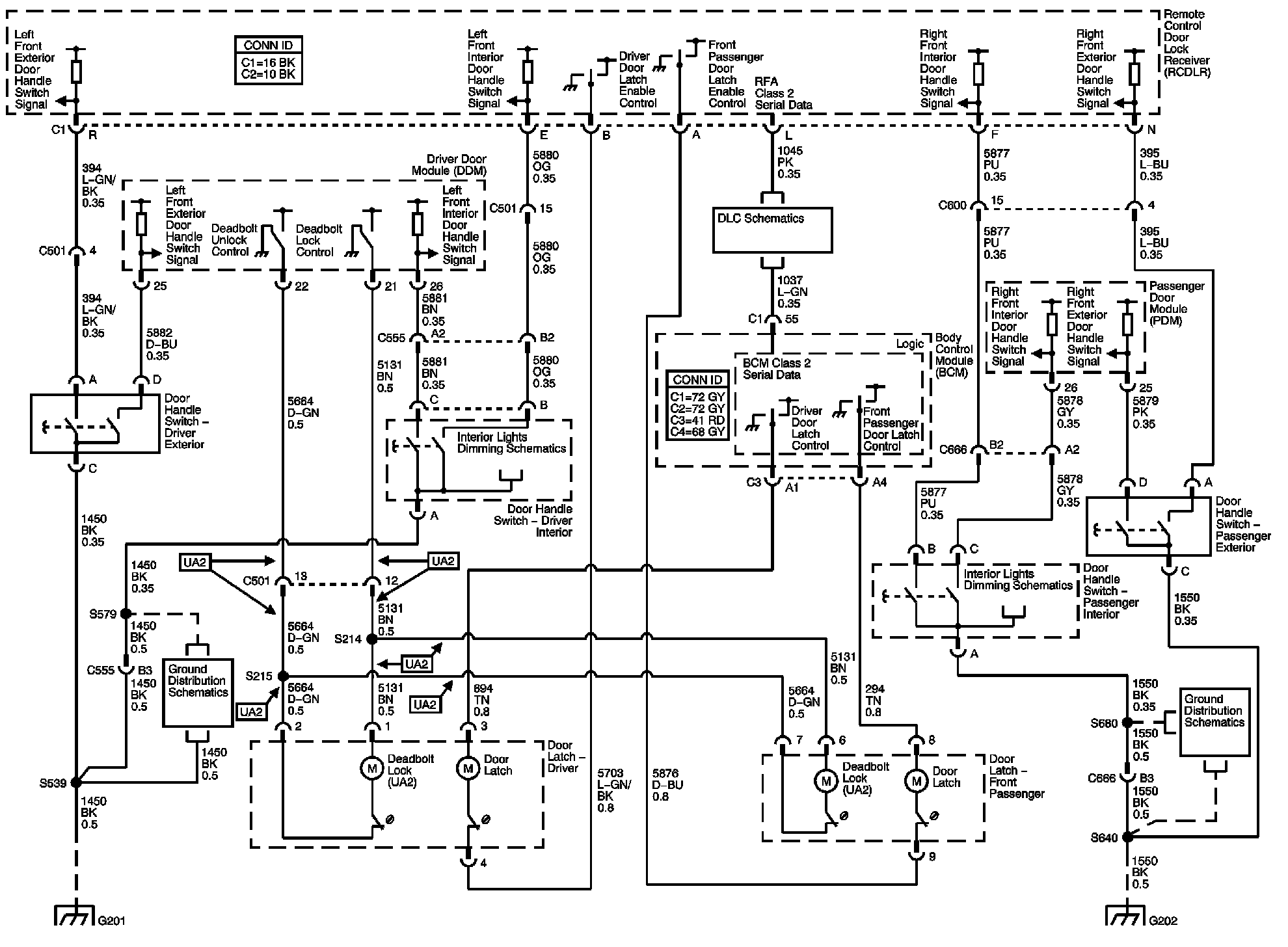 Locations: The locations for the Connectors, Grounds, Splices, and Grommets shown within these diagrams can be found via their numbers at Vehicle Locations. Locations