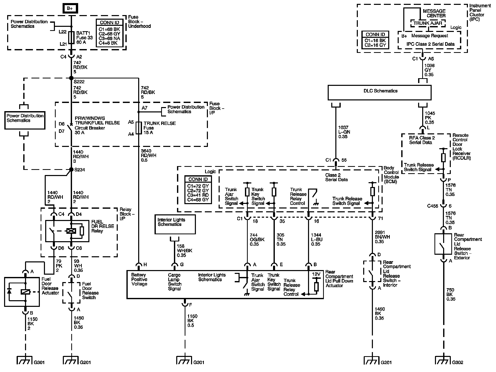Locations: The locations for the Connectors, Grounds, Splices, and Grommets shown within these diagrams can be found via their numbers at Vehicle Locations. Locations