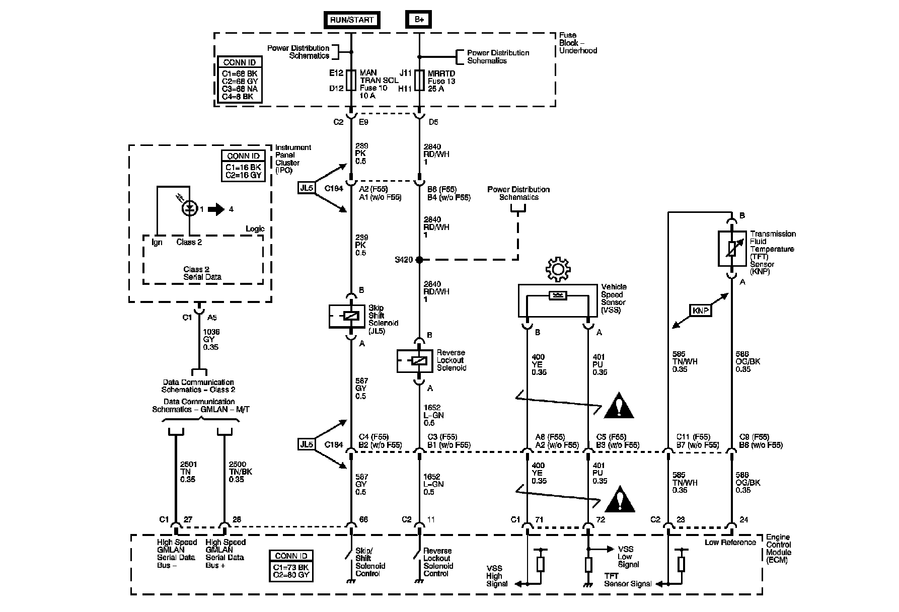 The locations for the Connectors, Grounds, Splices, and Grommets shown within these diagrams can be found via their numbers at Vehicle Locations.