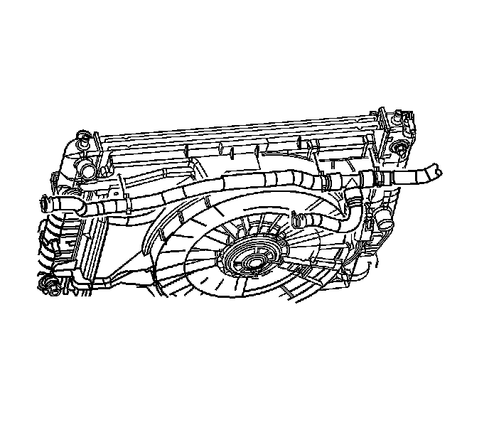 Disconnect the surge tank outlet hose assembly from the support tabs on the cooling fan shroud.