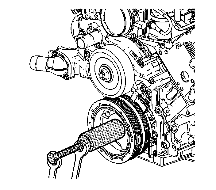 1. Tighten the crankshaft balancer bolt a first pass to 50 N.m (37 lb ft).
