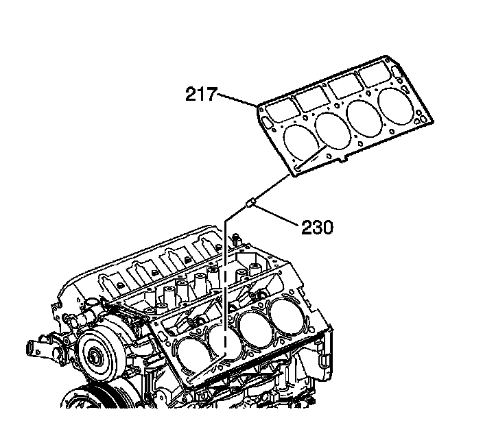 6. Install the NEW cylinder head gasket (217) onto the locating pins.