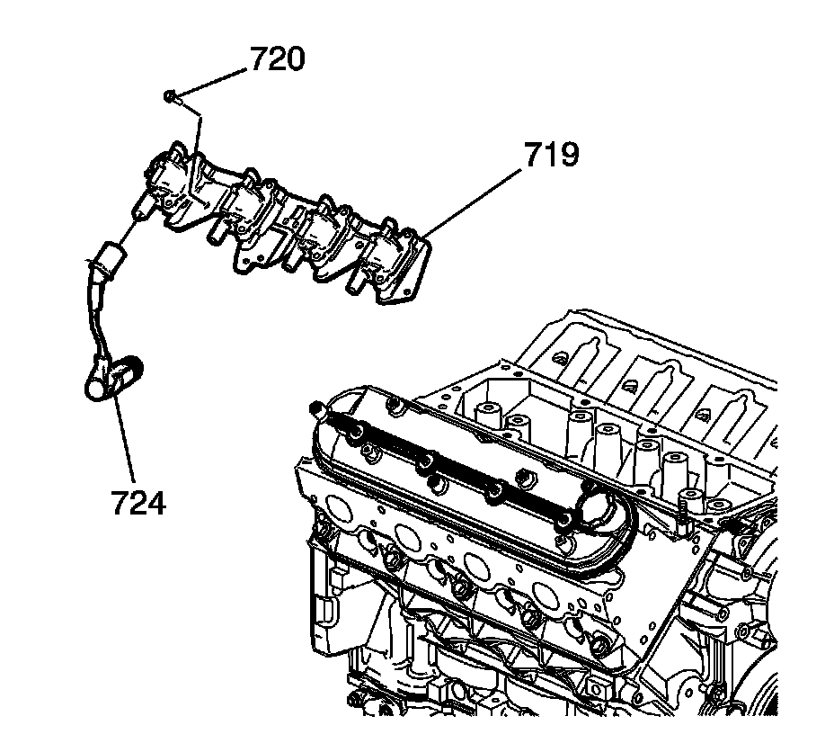 3. Remove the ignition coil and bracket assembly (719).