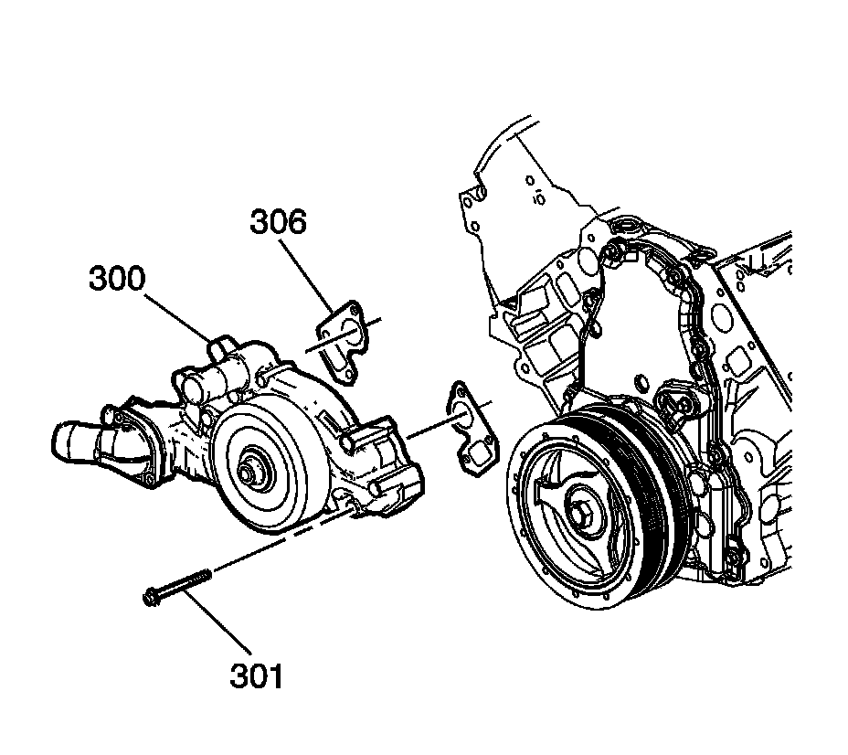 Remove the water pump (300) and gaskets (306).