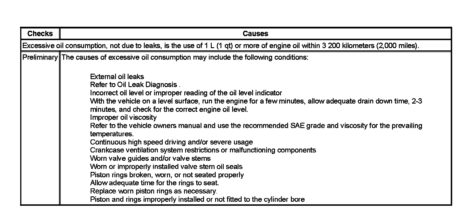 Oil Consumption Diagnosis: