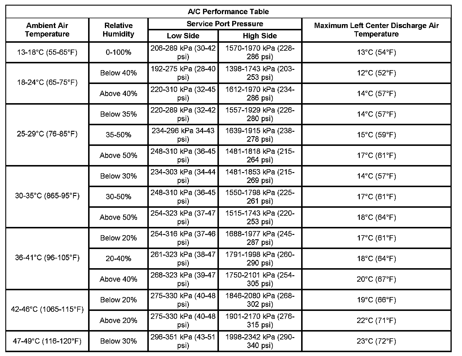 Air Conditioning (A/C) System Performance Test (7.0L)