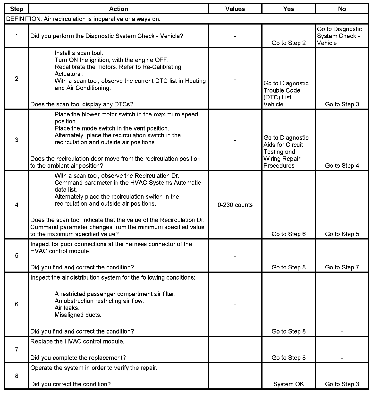 2. This action will calibrate the HVAC actuators and check to ensure the DTCs that set when calibration is performed will be set.