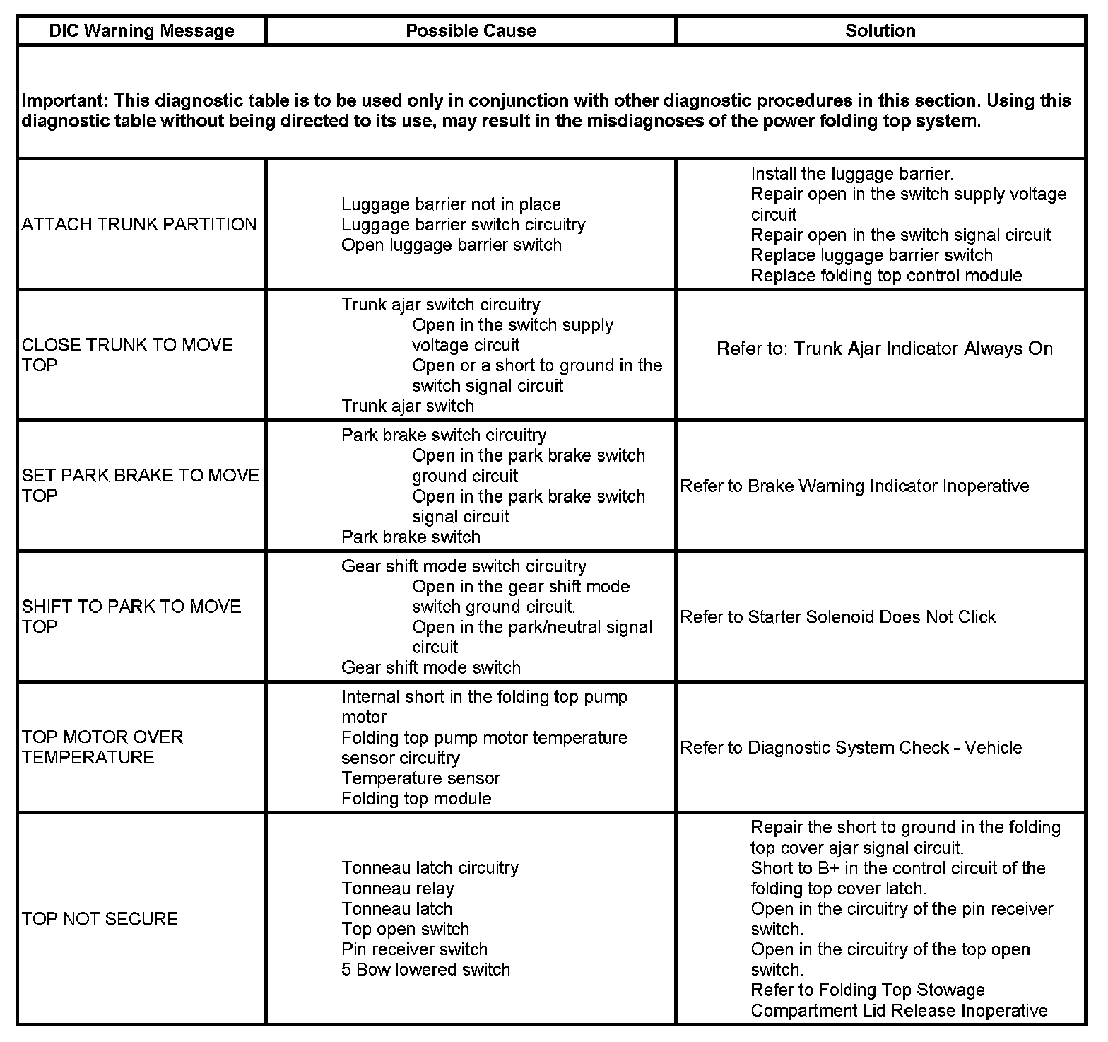 DIC Warning Messages - Sunroof/Moonroof