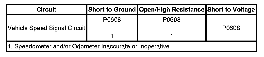 The engine control module (ECM) creates the vehicle speed output signal by pulsing the circuit to ground at a rate of 4KPPM. The VSS input is pulled high to B+ in the instrument panel cluster (IPC). The IPC converts the 4KPPM vehicle speed signal to a speedometer position to indicate the vehicle speed. The ECM monitors the voltage at the vehicle speed output signal circuit to determine when the voltage is out of the normal operating range.