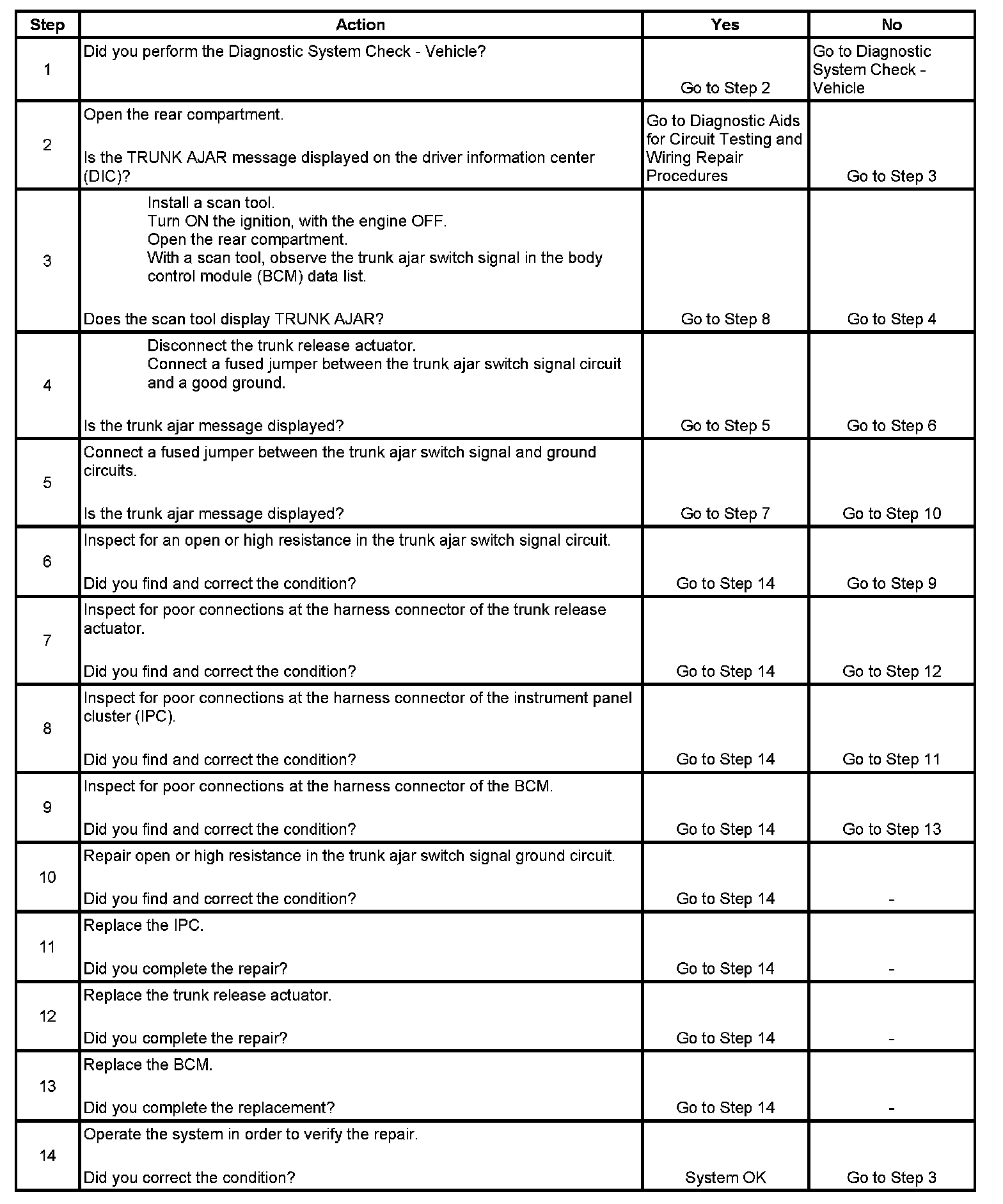Trunk Ajar Indicator Inoperative (Convertible)