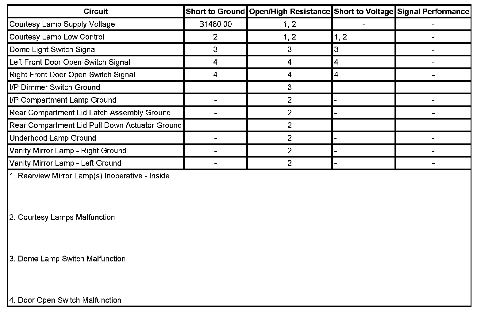 Rear Compartment Courtesy Lamps Malfunction