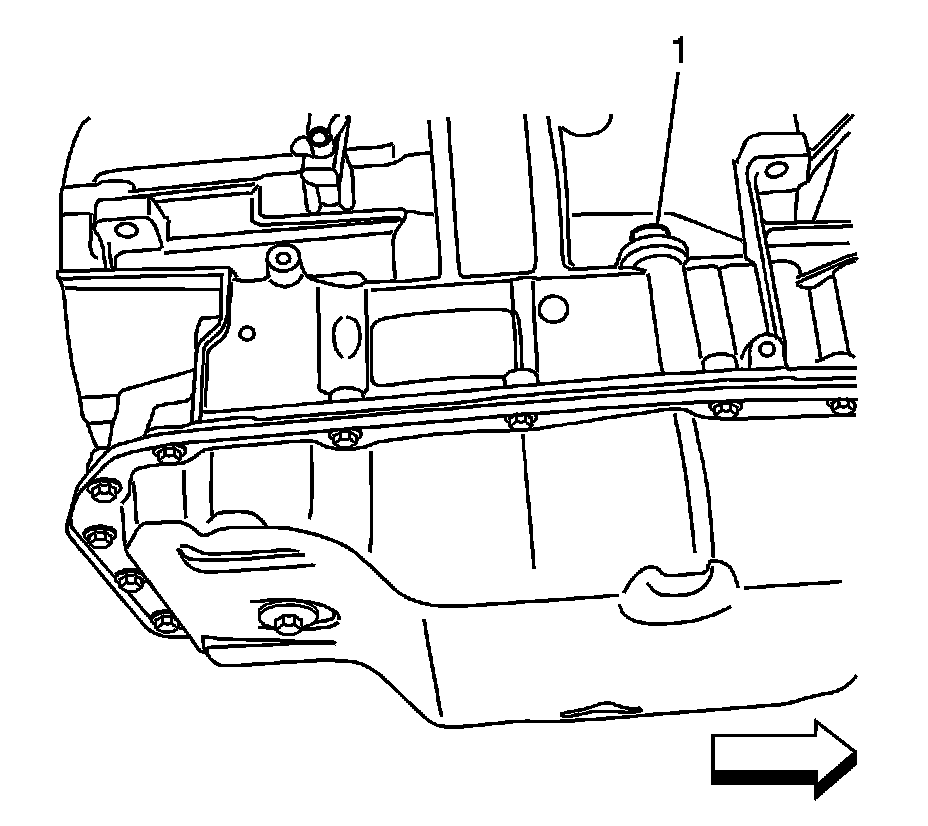 Perform this procedure for vehicles with transmissions that are not equipped with a fill tube and dipstick. Based on accessibility, transmission fluid may be added through the fluid fill tube plug assembly (1) hole or through the oil level check plug (2) hole in the bottom of the transmission fluid pan.