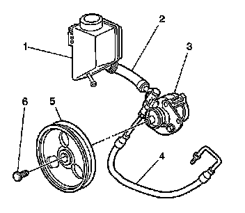 2. Install the outlet hose to the power steering pump (3).