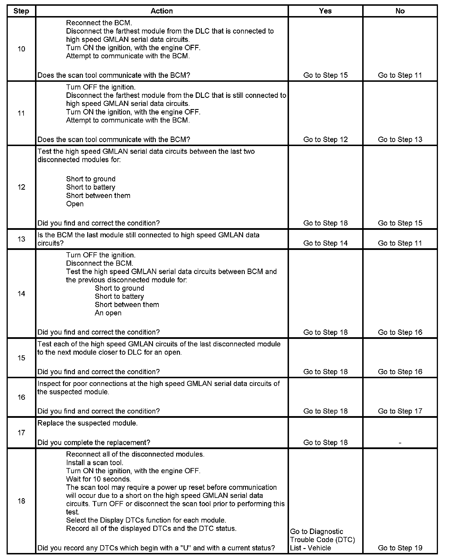 2. A partial malfunction in the high speed GMLAN serial data circuits uses a different procedure from a total malfunction of the high speed GMLAN data circuits. The following modules communicate on the high speed GMLAN serial data circuits: