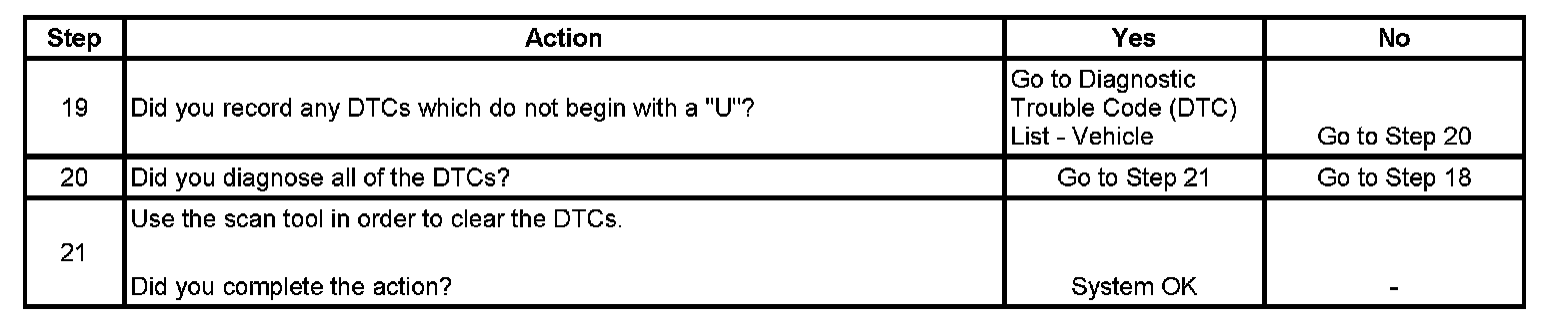 Modules connected to the high speed GMLAN serial data circuits monitor for serial data communications on the high speed GMLAN network during normal vehicle operation. Operating information and commands are exchanged among the modules. When a module detects a bus-off condition a DTC U0001 or U2100 will be set. These DTCs can be retrieved as history only.