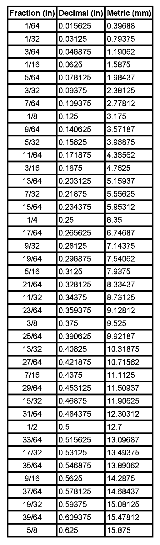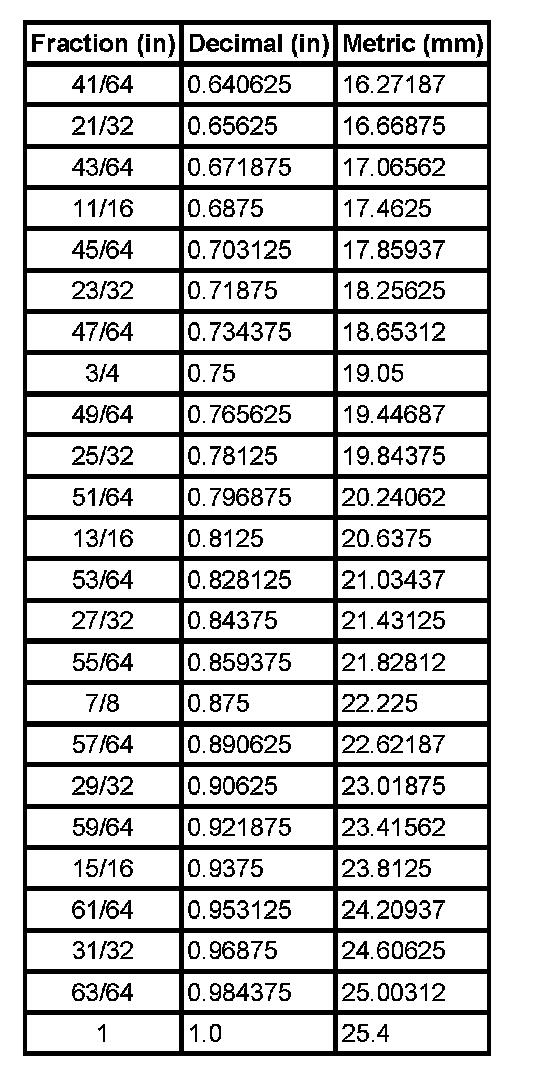 Equivalents - Decimal and Metric