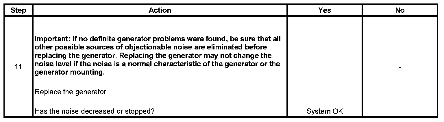 Noise from a generator may be due to electrical or mechanical noise. Electrical noise or magnetic whine usually varies with the electrical load placed on the generator and is a normal operating characteristic of all generators. When diagnosing a noisy generator, it is important to remember that loose or misaligned components around the generator may transmit the noise into the passenger compartment and that replacing the generator may not solve the problem.