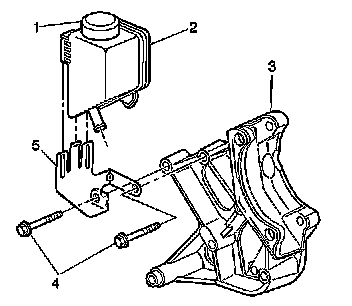 3. Install the power steering fluid reservoir (2) to the power steering fluid reservoir bracket (5).