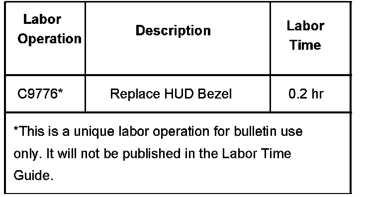 Use care to avoid damage to the head up display (HUD) lens when removing and installing the HUD bezel. The HUD lens is fragile. Failure to carefully remove/install the bezel can lead to HUD lens damage.